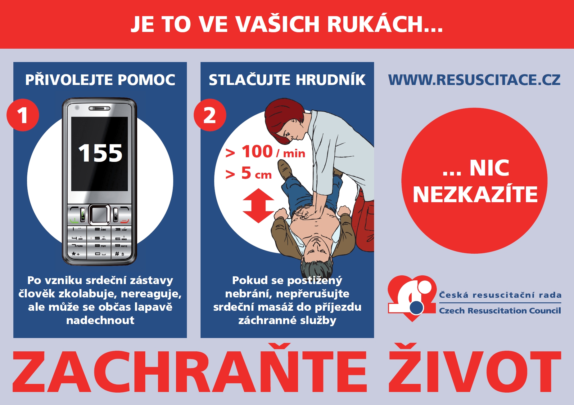 Srdeční zástava postihuje v Evropě přibližně půl miliónu osob ročně! Nejčastější příčinou zástavy je onemocnění srdce, například akutní infarkt srdečního svalu. Vlivem změn životního stylu, stresu, kouření a dalších rizikových faktorů však narůstá výskyt srdečních zástav u velmi mladých osob, včetně sportovců. Srdeční zástava vzniká obvykle neočekávaně, často z plného zdraví a bez varovných příznaků. Nikdo z nás neví, zda se v příštích minutách nestane svědkem takové příhody nebo zda nebude pomoc potřebovat sám. Poskytnutí pomoci je velmi jednoduché: zavolání na linku 155 pomocí mobilního telefonu a provádění srdeční masáže musí zvládnout úplně každý, včetně větších dětí. Operátoři tísňové linky 155 zároveň po telefonu provedou volajícího správným postupem, než posádka záchranné služby dojede na místo. Zahájením resuscitace u člověka se srdeční zástavou, tedy ve stádiu klinické smrti, nelze nikdy nic pokazit. Je možné „pouze“ zachránit život…